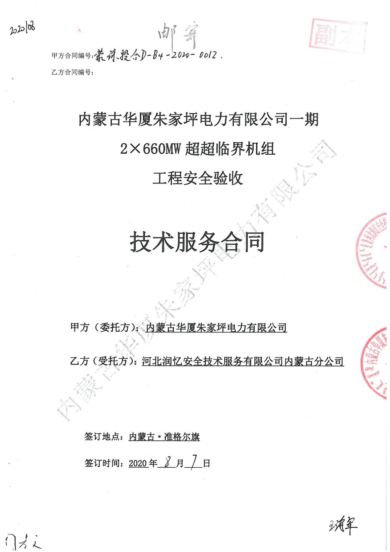 内蒙古华夏朱家坪电力有限公司一期2*660MW超超临界机组工程安全验收