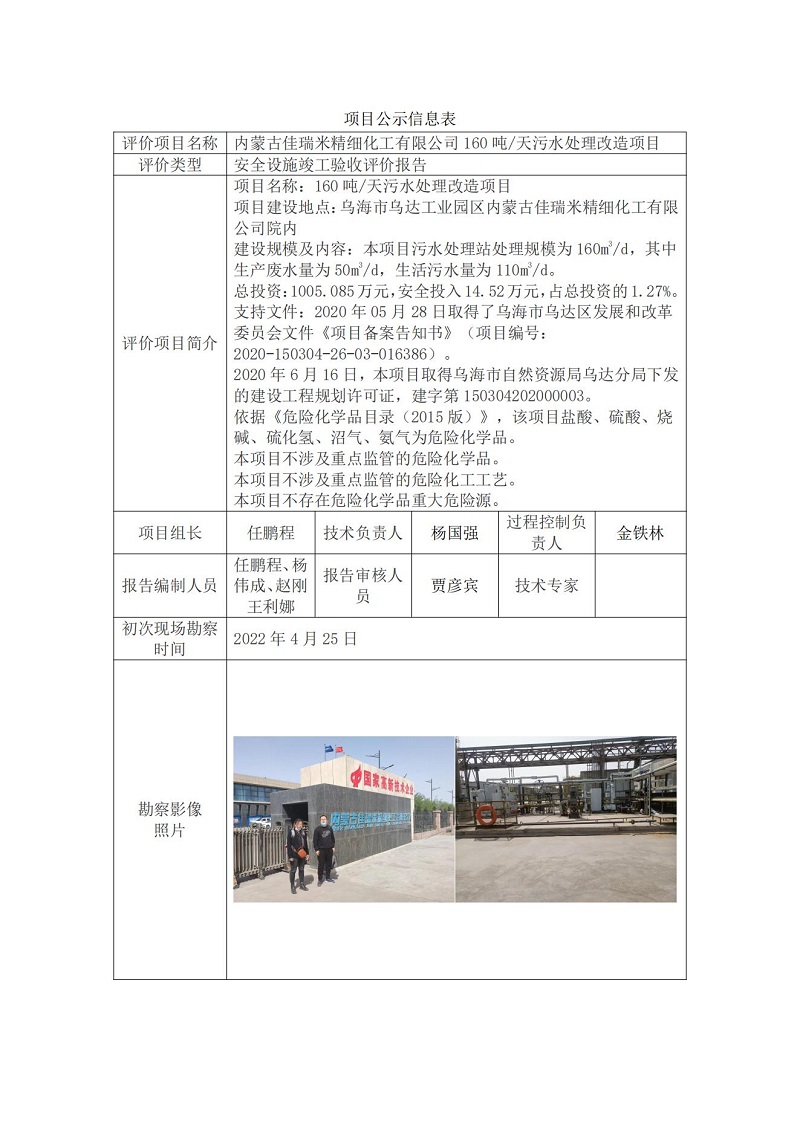 内蒙古佳瑞米精细化工有限公司160吨天污水处理改造项目-验收