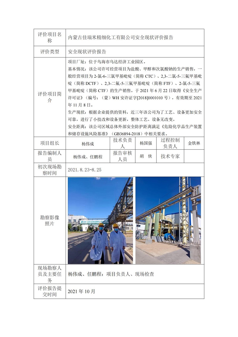 内蒙古佳瑞米精细化工有限公司安全现状评价报告公示信息表