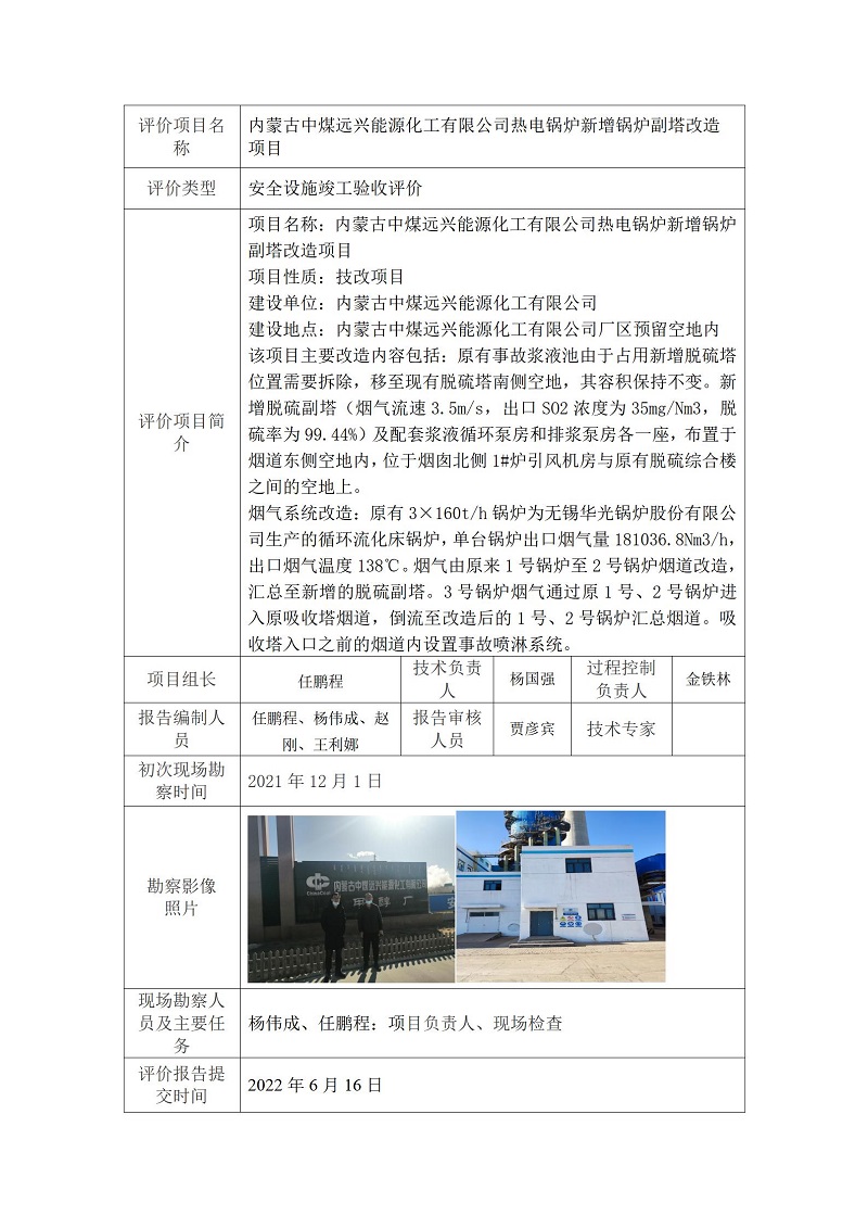 内蒙古中煤远兴能源化工有限公司热电锅炉新增锅炉副塔改造称项目
