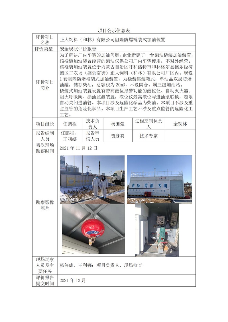 公示信息表-正大饲料(和林)有限公司阻隔防爆橇装式加油装置现状