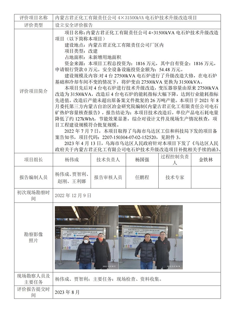 内蒙古君正化工有限责任公司4×31500kVA电石炉技术升级改造项目